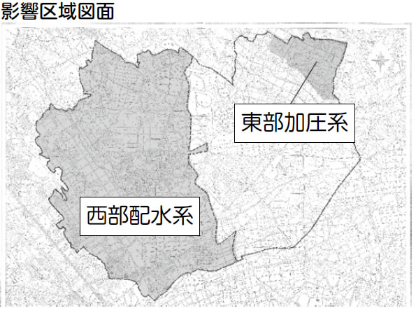 影響区域 西部配水系、東部加圧系(下図参照)